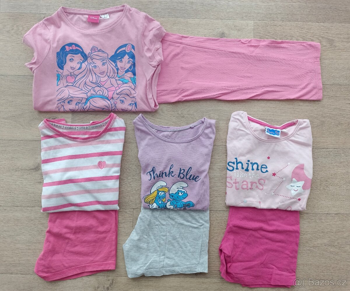 Dívčí pyžama s krátkým rukávem a kraťasy. Pouze pyžamo s princeznami má dlouhé nohavice. 100% bavlna. Cena uvedena za všechny. Mrkněte na mé další inzeráty v této velikosti.