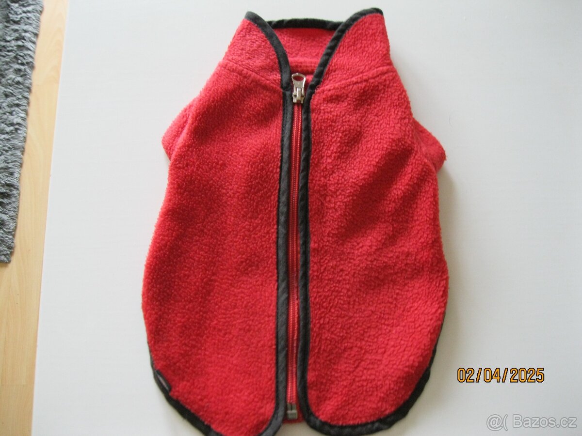 Prodám flísový obleček pro pejska malé plemeno. Délka 28 cm objem hrudníku 40 cm.