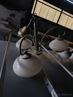 Vše na foto.. Ten s pěti žárovkama jedno sklo náhradní 500kc. Druhý se třemi 400kc. Hliněný jen kryt 300kc