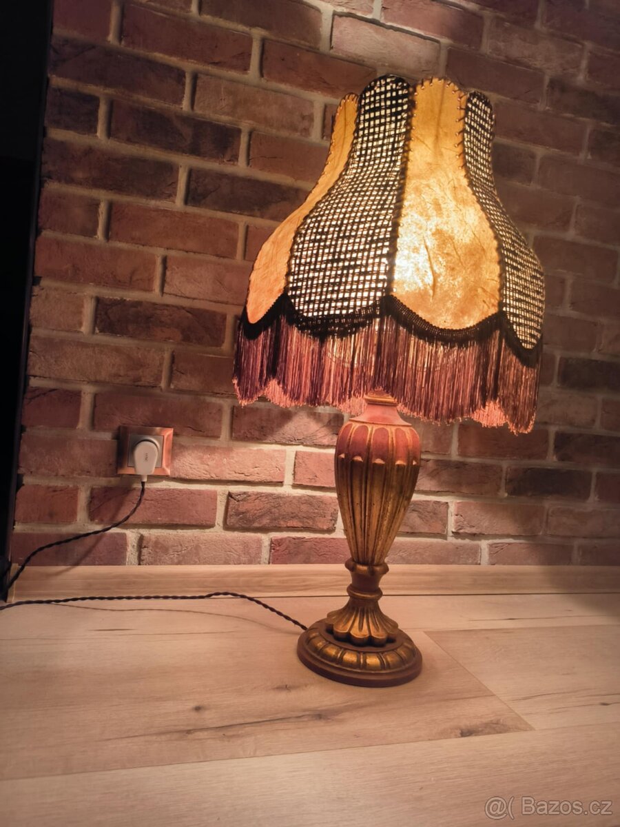 Prodám retro lampu, výška 77 cm, materiál kůže, dřevo.