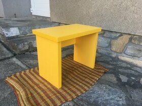 Nový stůl v dekoru žlutá s rozměrem 600x350 a výškou 485mm kde nohy i deska má sílu 36mm vše ohranované 2mm hranou PUR lepidlem a nohy opatřené kluzáky. Nabízím i v červené.