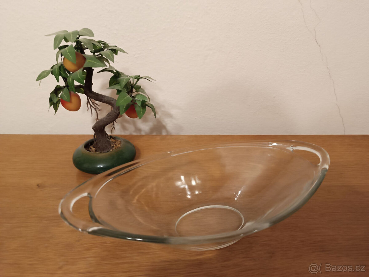 Prodám mísu z čirého skla – délka 28,5 cm, šířka 15 cm, výška 6,5 cm.