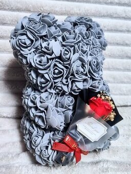 Medvídek z růží, méďa s kyticí, Valentýn, šedý