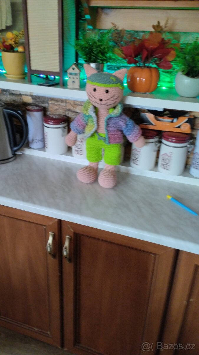 Háčkovaný kocourek Marbulin, ruční práce, příze, protialergenní výplň, bezpečnostní ocicka, vel. Cca 40 cm, vhodné jako dárek, doplněk,hračka. Cena 299 plus poštovné.
