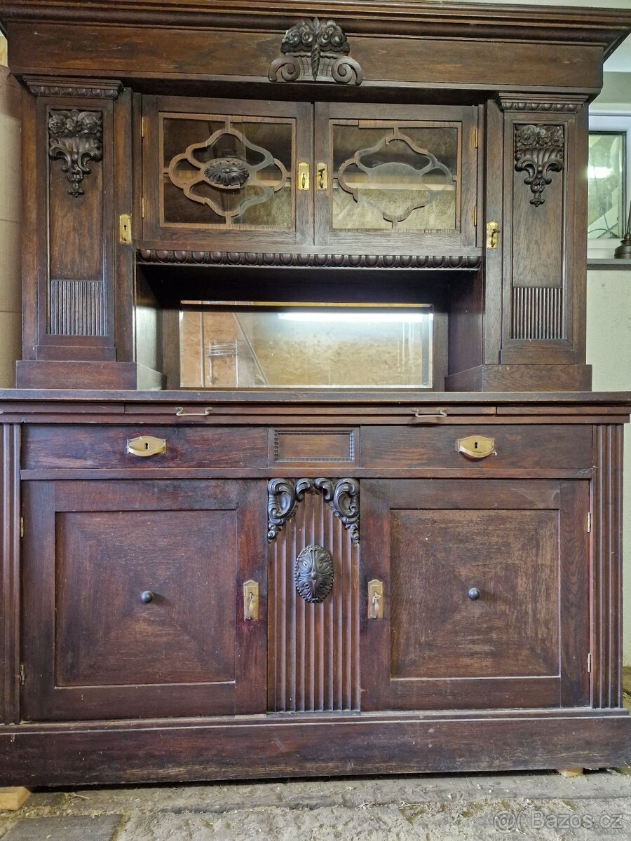 starožitný sekretář cca 100 let starý velmi zachovalý, dvířka, šuplíky, vše jde otevírat + klíče od schránek jsou součástí. vhodný na chalupu cena 15000,_Kč tel 606432028