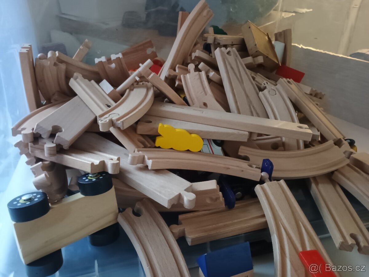 Dřevěn koleje (IKA, idl, apod.) s vláčky, nádražím apd. Pouze elá sada.