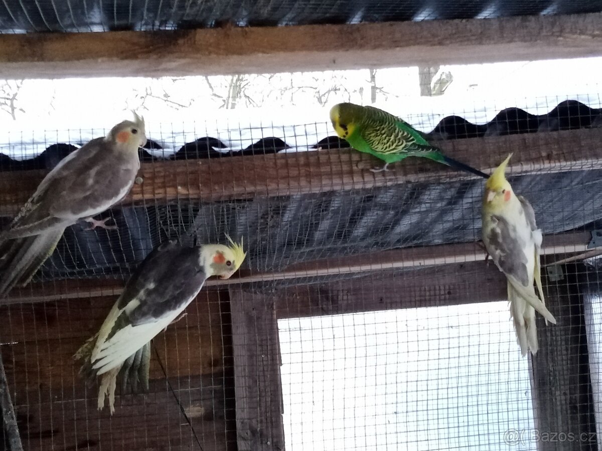 Nabízím mladé korely rok 2025 viz foto bez určení pohlaví, jsou z venkovní voliery po celý rok, 350 Kč /kus, jen SMS, ozvu se zpět, děkuji