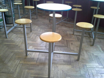 Prodám barový stůl se židlemi. K dispozici 35-40ks Při slušném jednání sleva. Sleva i při odběru více nebo všech kusů Následující fotografie jsou s rozměrem. Focený stůl je 10 let používaný a je v horším stavu než ty co prodávám. Tyto na fotografii si nechávám. Ty co jsou na prodej, jsou ve stodole ze zrušeného podniku a budou hlavně hodně zaprášené, jinak jsou věkem mladší a v lepším stavu Jirka