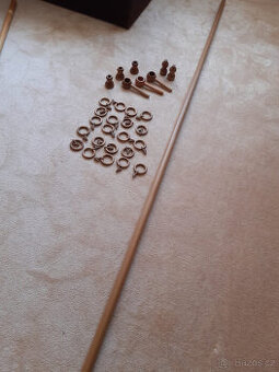 Prodám dřevěnou garnýž l=300 cm s příslušenstvím: 3 ks úchytky do zdi, 2 ks koncovky, 21 ks kroužek + plastové žabky na uchycení záclony/ závěsu. Pouze osobní odběr.
