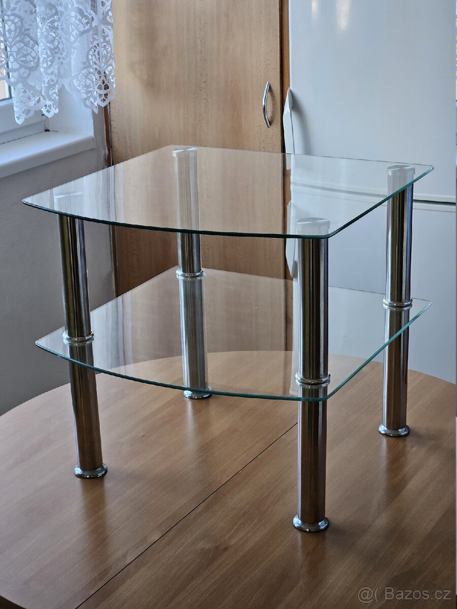 Prodám krásný skleněný stolek do obýváku či ložnice. V dobrém stavu, pouze drobné škrábanečky na vrchním skle. Rozměry doplním. DOPRAVA: Osobní převzetí ve Vyškově nebo mohu po domluvě dovést/přiblížit po okolí. SLEDUJTE I MÉ DALŠÍ NABÍDKY