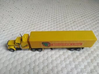 Model US kamionu kombinace kov/plast Tahač kovový,návěs plast s otvíracími zadními vraty. Délka cca 23cm. Má utržený královský čep,jinak funkční,neodpojuje se při jízdě. Neposílám na dobírku.Zasílám zásilkovnou/balíkovnou do boxu. Po domluvě lze osobní odběr.