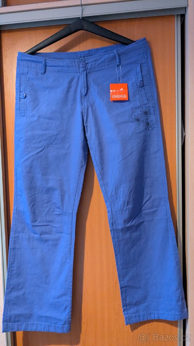 Plátěné kalhoty. Snížený pas, délka 104 cm, pas 94, boky 140 cm. Nové nevhodná velikost. Cena 300 Kč