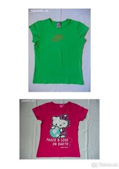 Prodám 5 ks pěkných triček kr. rukáv pro dívku, vše vel. 146. 1x zelené tričko zn. Nike, 1x růžové tričko Hello Kitty, 1x bílé tričko zn. Cherokee, 1x bílé tričko zn. Pepco, 1x růžové tričko zn. Disney. Možnost osobního předání v Brně nebo posílám přes Zásilkovnu nebo Českou poštu.