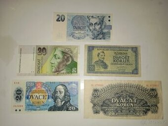 Nabízím bankovky 20 Kč(s) z let 1944-1994, 5 různých emisí bankovek. Vše NEPERFOROVANÉ, aktuální stav viz. foto., přesně tyto bankovky dostanete. Cena: Za všech 5 kusů 555,- Kč. Možnost osobního převzetí v Brně, jinak zasílám do 2 dní po připsání platby přes zásilkovnu, na Slovensko packetou. Podívejte se prosím i na mé další nabídky přebytků ve sbírce bankovek. V případě Vašeho konkretního požadavku na jakoukoliv bankovku ČSR od roku 1919 mě neváhejte kontaktovat. Spolupracuji s více sběrateli. Inzerát je aktuální do smazání. Jsem i na WhatsAppu.