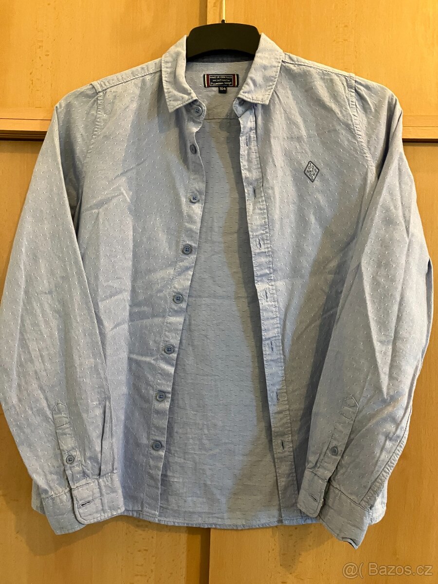 prodám modrou chlapeckou společenskou košili, C&A, vel. 164, jako nová, délka ZD 65 cm, rukáv od krku 72 cm, mám 2 ks, prodej i jednotlivě