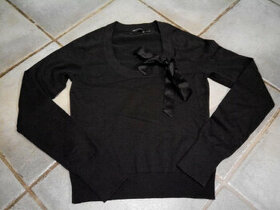 Dámský butikový černý svetr s kulatým výstřihem vel. S, zn. The Limited (dovoz UK), materiál 74% bavlna, 22% nylon, 4% spandex. Úžasný svetřík zdobený saténovou stuhou na výstřihu, velice kvalitní, pružný a jemný materiál. Svetr je oblečen asi 2x, top stav, jako z obchodu.
