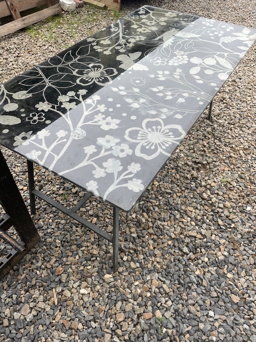 Skleněný stolekProdám skleněný stůl v dobrém stavu . Sklo je volně položené na lehkých nohách . Pouze zaprášené .