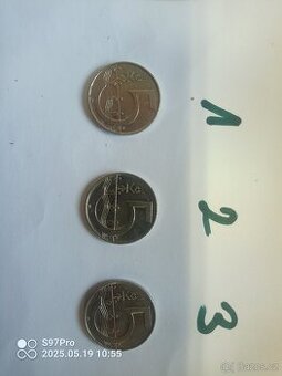 Vzácná česká pěti koruna nízké emisní vydání. V oběhovém stavu.stav dobrý . Mám tři kusy cena je za jeden kus.