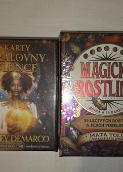 Prodám sadu dvou seberozvojových karet. Karty Královny Slunce - Kniha a 44 karet Magické rostliny - Kniha a 36 karet. Nádherné provedení. Jsou úplně nové, nerozbalené.