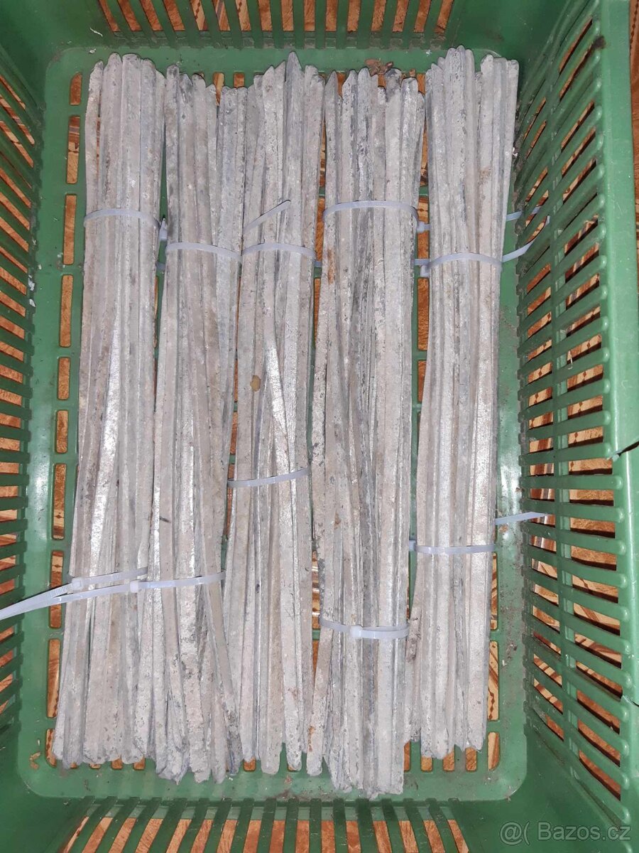 Cínové tyčky cena 1000 Kč za 1 kg. Zřejmě Sn 99%. Celkově nabízím 22kg