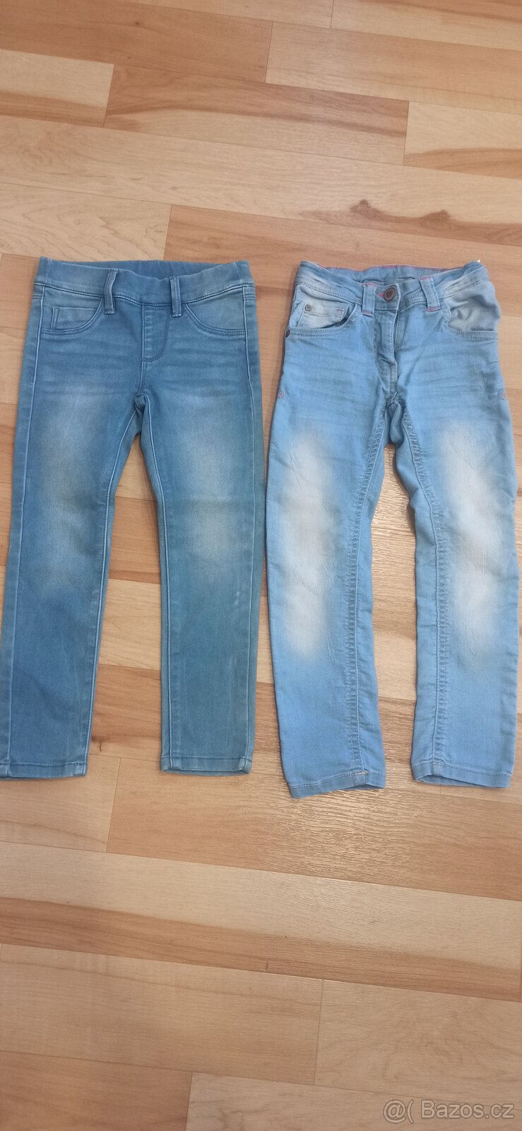 Prodám dívčí džíny DOPODOPO vel.110. Levé jsou nošené málo, vpravo nové bez visačky.