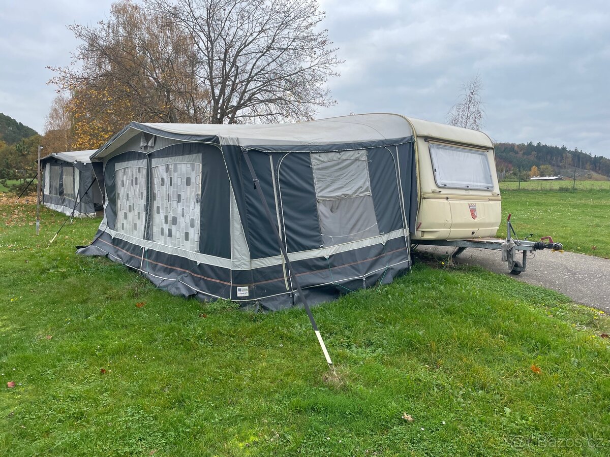 Prodám karavan na Slapech Caravan-camping Nová Živohošť na trvalé stání cena nájmu pozemku na rok činí 30000,- včetně elektřiny na kterou je karavan trvale napojen v ceně jsou žetony do společných sprch cca 30m od karavanu. Voda 5m za vedlejším karavanem. Možnost natažení hadice až do karavanu. Ke karavanu je předstan o rozměru 4x dělka karavanu cca 5,3m. V kempu se nachází stánek s občerstvením. Vhodné pro rybáře nebo k rekreaci na koupání cca 50m od vody. Dohoda o ceně možná.
