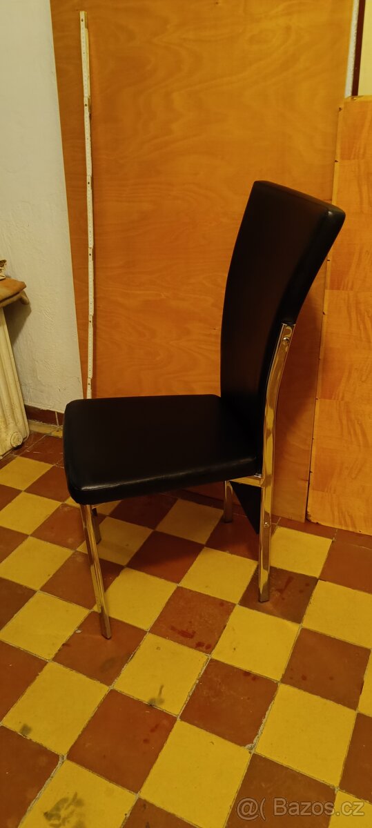 Prodám 4ks černých židlí s kovovými nohami. Perfektní stav. Výška židlí 100cm. Výška sedací části 48cm. Hloubka židlí 47cm. Židle mám v Ostravě Vítkovicích. Cena za 4ks židlí 1 200,- Kč.