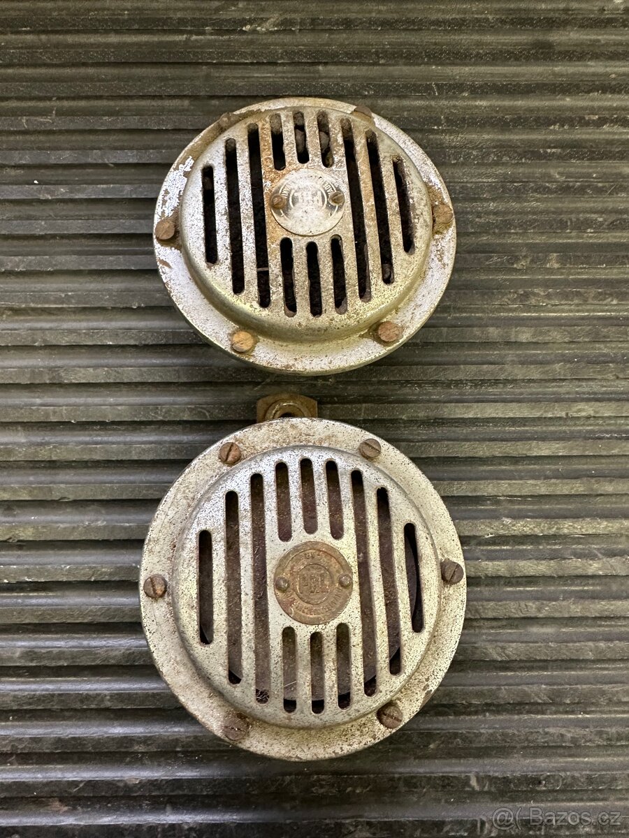 Prodám klaksony v původním stavu, funkčnost neznáma. Vhodné na renovaci, jinak bez poškození.
