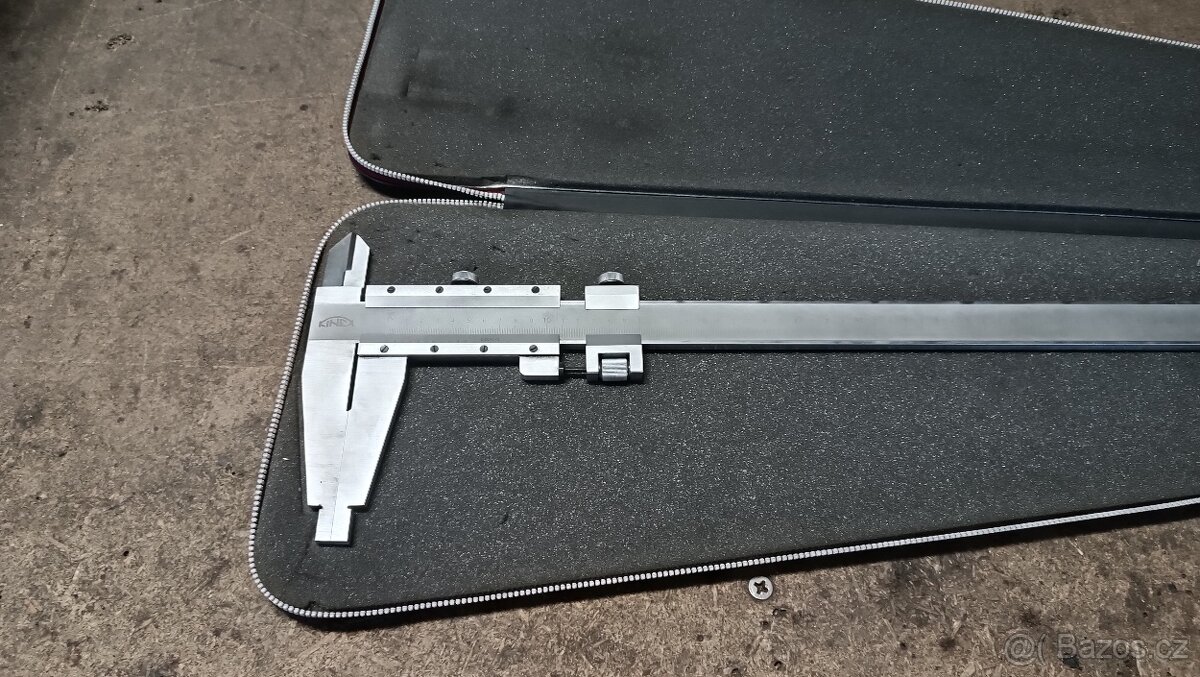 Prodám velké posuvné měřítko, šupleru. Délka měření 850mm. Stav výborný jako nové, používané jen párkrát. V původním obalu. Cena nového min. cca 7000,-