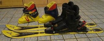 Pro děti cca 3-6 let. Dvoje lyžáky v ceně. Dělka lyží 90 cm. Lyžáky: délka stélky 22,5 cm, velikost cca 29.