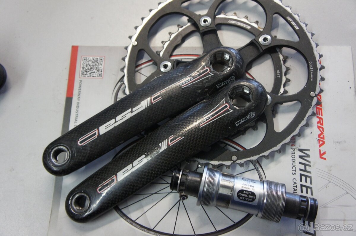 Silniční kliky FSA Carbon 175mm 50/34z střed BSA vše ok.