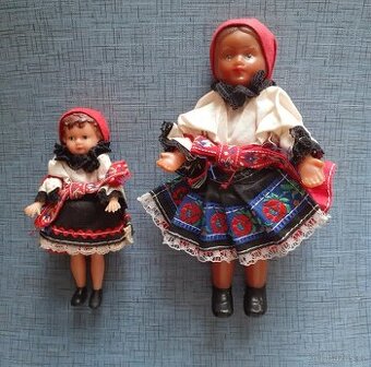 Nabízím z pozůstalosti 2 panenky v krojích (selky) v nálezovém stavu. Menší měří 10 cm a větší 15 cm. Cena za obě 360,- Kč.