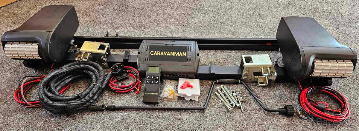 dovoluji si nabídnout pohon/mover EM313, který usnadňuje manipulaci s Vaším karavanem, aniž byste ho museli zapřáhnout za vozidlo. EM313 má větší válečky ( oproti em203), které zajišťují větší přilnavost k běhounu na pneumatikách. Převody byly upraveny tak, aby se zvýšil točivý moment motorů. EM313 je vybaven plastovým krytem, který chrání motory a záběrový mechanismus před vodou a mechanickými nečistotami. • Motory se ke kolům přitahují a odtahují klikou (obě strany současně a to z jedné strany) Dálkový ovladač je vybaven digitálním displejem, jenž mj. signalizuje přetížení karavanu a vybití baterie • Vhodný pro karavan s jednou nebo dvěma nápravami (při použití 2 sad pohonů se karavan ovládá velmi lehce) • Vybaven technologií „soft start/stop“ pro přesné a „nárazuvzdorné“ ovládání. • Bezpečné pracovní zatížení: 2500 kg na asfaltu, písku a štěrku (rovné plochy) • Sklon: schopný posunovat karavan o váze 1900 kg do 18% svahu • Maximální zatížení: 2500 kg (1900 kg na 18% sklonu) • Rychl