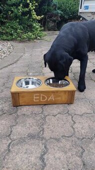 Na zakázku Vám vyrobíme stojany na krmení z bukového nebo smrkového dřeva, které je ošetřeno 100% bezpečným nátěrem pro styk s potravinami. Součástí baru jsou dvě nerezové misky. Foto je ilustrační.Je možné vylaserování jména Vašeho psího miláčka.Délka 49cm, šířka 26cm a výška 14cm. Krásný dárek k Vánocům.