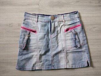 Prodám riflovou natahovací sukni. V pase 38 cm, délka 37 cm, boky 46 cm.
