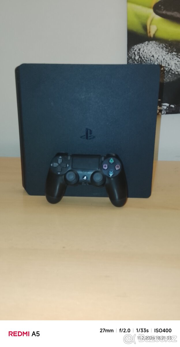 PlayStation 4 Slim ve skvělém stavu, akorát trošku otlučený roh.