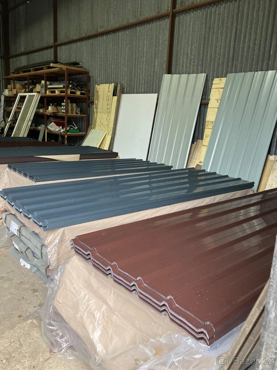 Plechy hnědé 8017 Šedé - antracit 7016 Šířka plechu 1,09m (109cm) po překrytí 1,04m (104cm) Tlouštka 0,4mm Délka 2m - 350kč/kus 2,5m - 450kč/kus 3m - 520kč/kus Dobříš - okr. Příbram 608965342