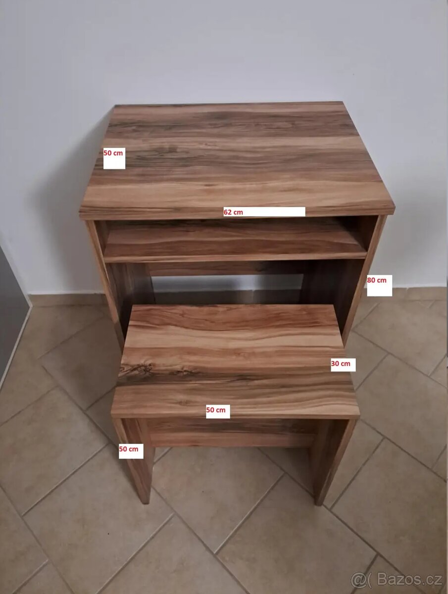 Kosmetický stolek,zrcadlo a dva noční stolečky. Rozměry dle obrázku.