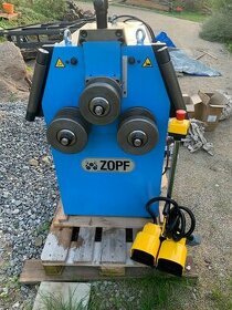Cena: Dohodou. Zakružovačka profilů a trubek ZB80-2M2 ECO. krátkodobě použitý výstavní kus, rok výroby 3/2022, záruční doba 24.měsíců. Popis: Stroj klasické konstrukce s mechanicky přestavovanou tvářecí kladkou, výrobek ZOPF Biegemaschinen GmbH,(D). Max. průměr zakružované trubky D 80x2mm z běžné oceli. Dvě hnané hřídele, přestavná volnoběžná hřídel je přestavována manuálně stavěcím šroubem, jak horizontální, tak vertikální pracovní poloha umožněná překlopitelnou karoserií zajišťuje v obou pracovních polohách pohodlnou práci. Stroj je vybaven v ceně sadou univerzálních kladek k zakružování 4-hranných profilů obdélníkového či čtvercového tvaru event. jiných. Ovládání dvěma (L,P) nožními 3-polohovými pedály s funkcemi 1.nula, 2.otáčení, 3.total stop a na stojánku umístěným total-stop. spínačem, průměr hřídelí 40mm. vnější průměry kladek 152/162 mm, přestavitelnost hřídele 120 mm, příkon 1,5 kW , 50 Hz, 400 V, dvourychlostní motor výstupní otáčky 8 a 16 ot/min zastavovací rozměry: l x b x v - 1050 x 600