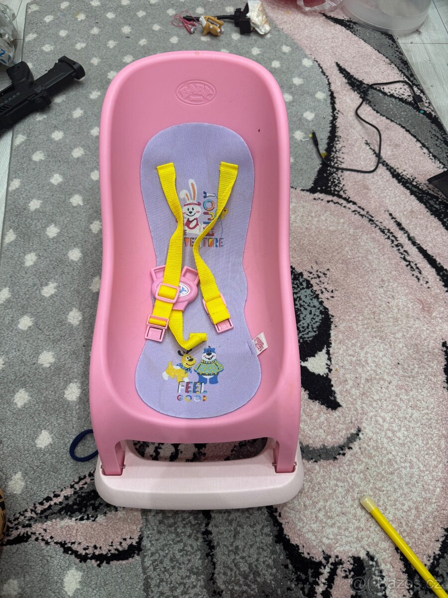 BABY born lehátko / sedátko pro panenku – málo používané Prodám originální lehátko / sedátko značky BABY born. Stav velmi pěkný, málo používané, bez vad, čisté. 🔹 vhodné pro panenky BABY born 🔹 bezpečnostní pásy 🔹 pěkné růžové provedení 💰 Cena: 450 Kč 👉 Při zájmu mám k prodeji i panenku BABY born (lze domluvit společně). Osobní předání nebo zaslání po domluvě. V případě zájmu mě kontaktujte.