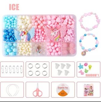 Set obsahuje: - korálky na výrobu náramků a členek - přívěšky a komponenty na výrobu náramků a členek - silikonový vlasec - nůžky vše nové