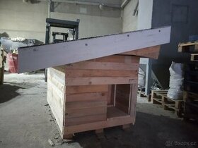 Pro střední plemeno. Zateplená ze 6ti stran. Deska/panel/deska, 5cm zatepleni. S přepážkou proti větru. Nad boudou sundavaci stříška z UV stabilního plastu. Bouda je na paletě. Vniřní rozměr 70x70cm, výška 63cm. Venkovní rozměr stříšky 150x150cm. Vchod 36x30cm. Pevná a bytelná, funkční bouda. Možnost i větších rozměrů.