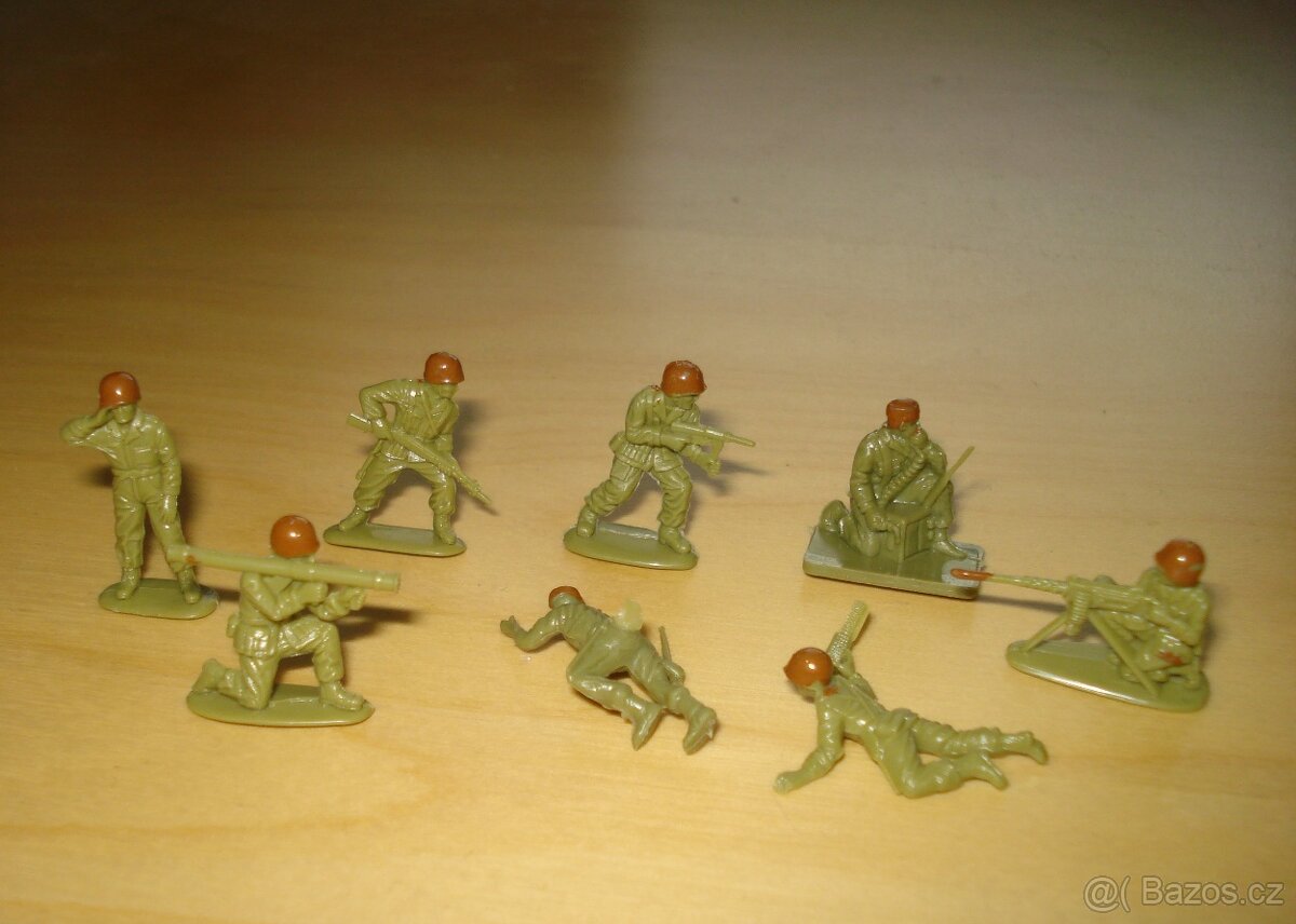 Malé figurky vojáků, plast, 70. léta. 50 kusů. Na prvních obrázcích jsou typy vojáků, které sada obsahuje.