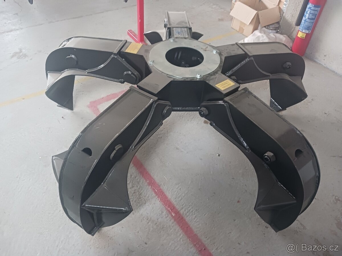 Polypový, šrotový drapák – nepoužitý Objem – 350 l Hmotnost – 390 kg Tlak – MAX 250 bar Průtok oleje – 60 l/min Počet zubů – 5 Nosnost – 2 500 kg