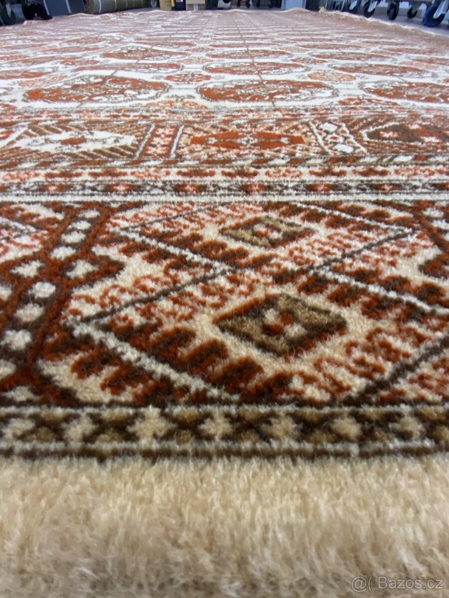 Prodám strojně tkaný vlněný koberec, rozměr 2,47 x 3.47m. Profesionálně vyčištěn naší čistírnou.