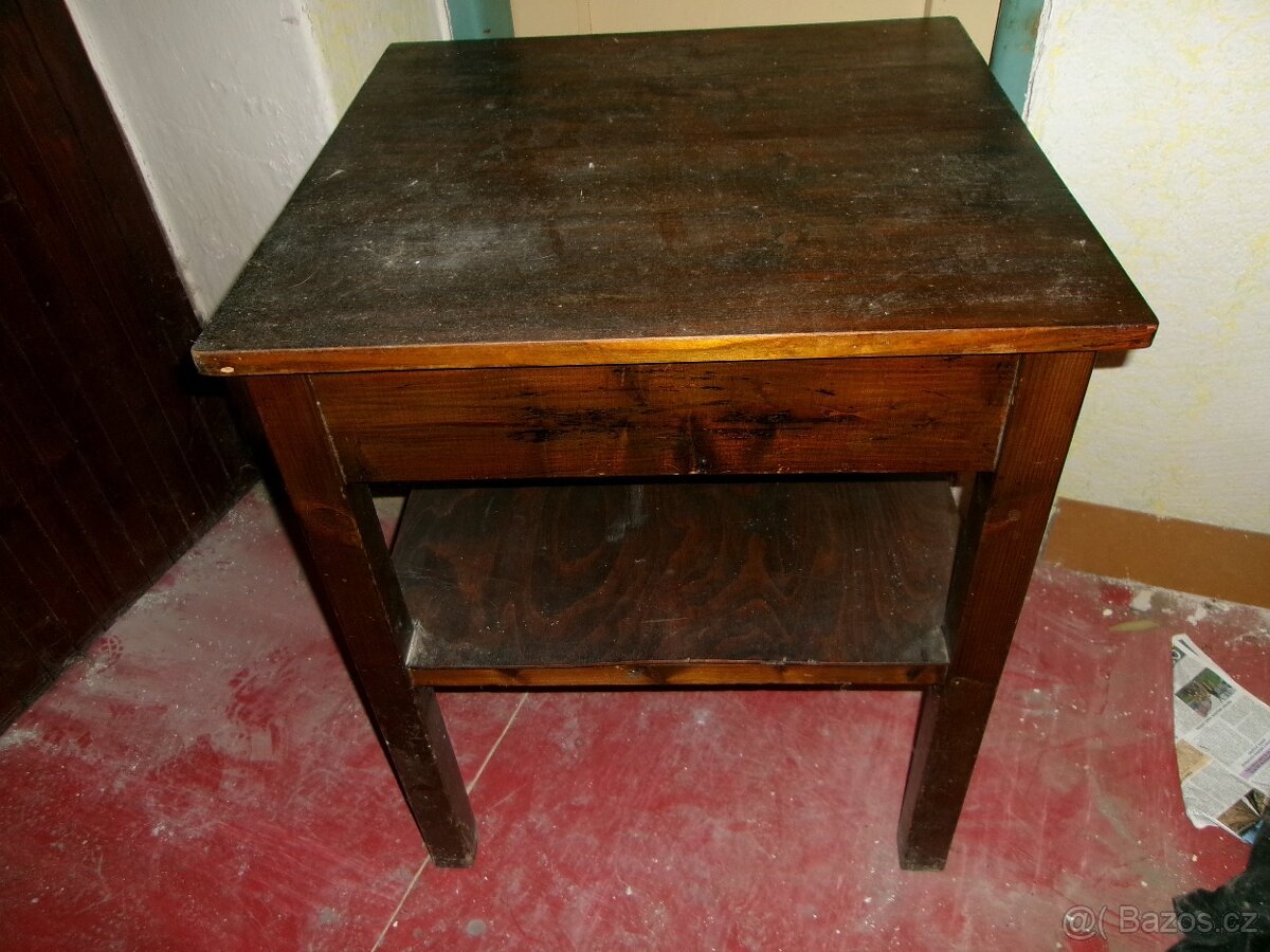 Cena: V textu. Nabízím malý stolek 62 x 62 x 74 cm. Nehodí se jako jídelní, má uprostřed foch. Je bez zásuvky Cena 150 Kč.