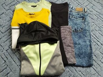 Prodám levně sadu oblečení, velikost 38. Rifle. legíny, rozepínací mikina a 2 mikiny přes hlavu. Posílám přes balíkovnu i zásilkovnu.