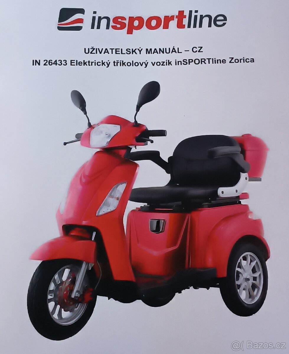 Prodám elektrický tříkolový vozík Zn.inSpirtline Zorica,1000W. Zakoupeno 4/25 v dobrém technickém stavu,pouze prasklina na boku úložného boxu a oděrka laku na zadním pravém blatníku. Cena po výrazné slevě 20.000 KČ. Osobní odběr Uherské Hradiště