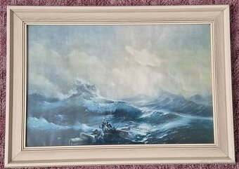 Nabízím zasklený obraz "Devátá vlna" od malíře Ivana Ajvazovskeho, velikost dřevěného rámu 84 X 60 cm. Originál obrazu o velikosti 3,3 x 2,2 metru je vystaven ve Státním ruském muzeu v Petrohradě a bývá označován jako nejkrásnější ruský obraz.