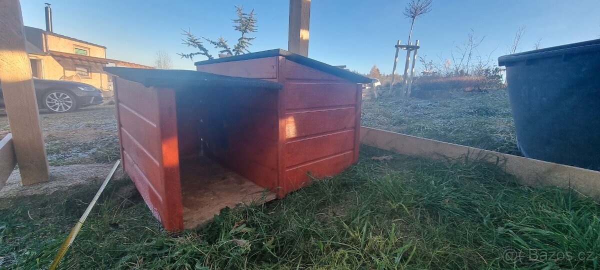 psí bouda, izolovaná, předsíň. délka 92, hloubka 75cm, výška 65cm. Pro psa menšího vzrůstu. Původní cena 5000,0 nyní za 2500,0korun. okres Příbram
